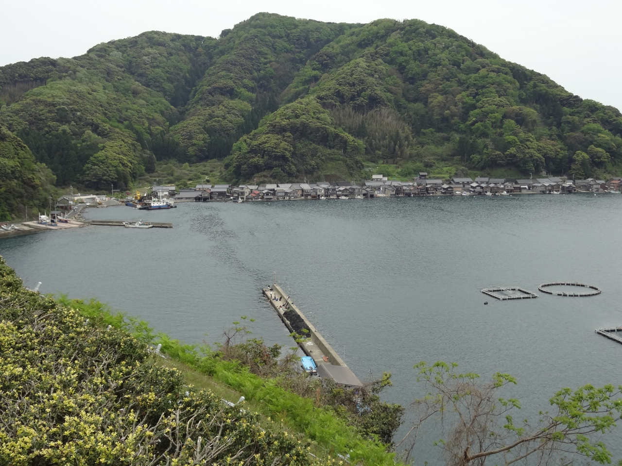 伊根の舟屋付近は道も狭く土産物屋さんはほとんどないのですが、その分、舟屋の雰囲気を感じることができます。こちらは、お土産や観光案内所もあり、なにより伊根地域全体を眺められ、舟屋が並ぶ姿を遠景ですが見て取れます。