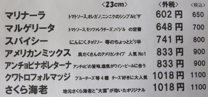 ピザは650~1100円。大手チェーンピザ店よりは安いかな。