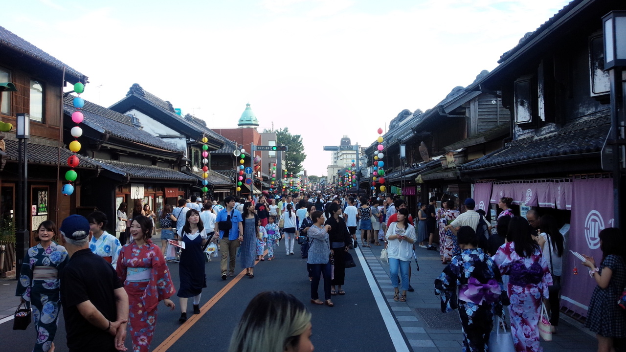 当日は「川越百万灯まつり」が行われており、メイン道路は通行止め、歩行者天国になっていて、大混雑でした