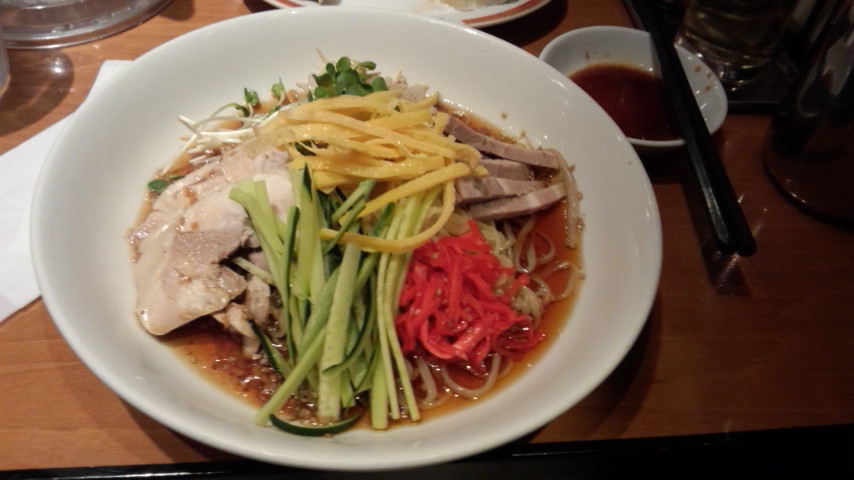 JR町田駅前の通り沿いにあるお店、夫婦で昼食をいただきました。冷やし中華と手造り餃子(1皿をシェア)をオーダ、冷やし中華の味は普通のレベルでしたが、チャーシューが沢山入っていてかなりボリュームがありました。餃子は一口サイズのもの、もちもち感がありジューシーでとても美味しかったです。手造り餃子にはいろいろな形・大きさのものがありテイクアウトもできますので、次回来ることがあれば違う餃子をいただきたいと思います。