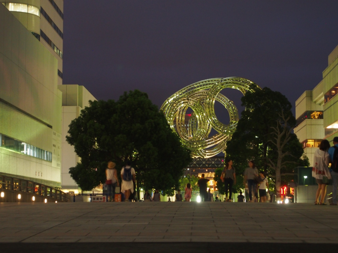 夜のみなとみらいへ足を向けると、ついついイルミネーションがきれいな観覧車の方に目を奪われがちですが、光を受けたモクモク ワクワク ヨコハマ ヨーヨーもなかなかでした。