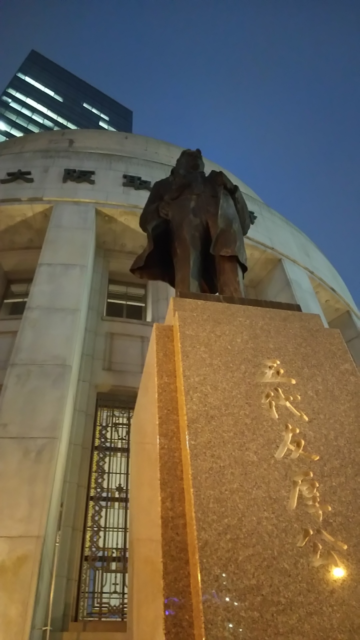 現在はここで立ち合いでの株取り引きは行われていないようですが、大阪造幣局の設立に貢献された五代友厚公(あの朝ドラで有名な)の像が正面にに建つ商業ビルです。1階と地下には飲食店が入っており、気軽なものから高級イタリアンまであります。