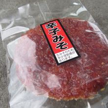 ザラメみそを中心に辛子みそやくるみみその煎餅を売っているお店。駄菓子屋さんのような佇まい。