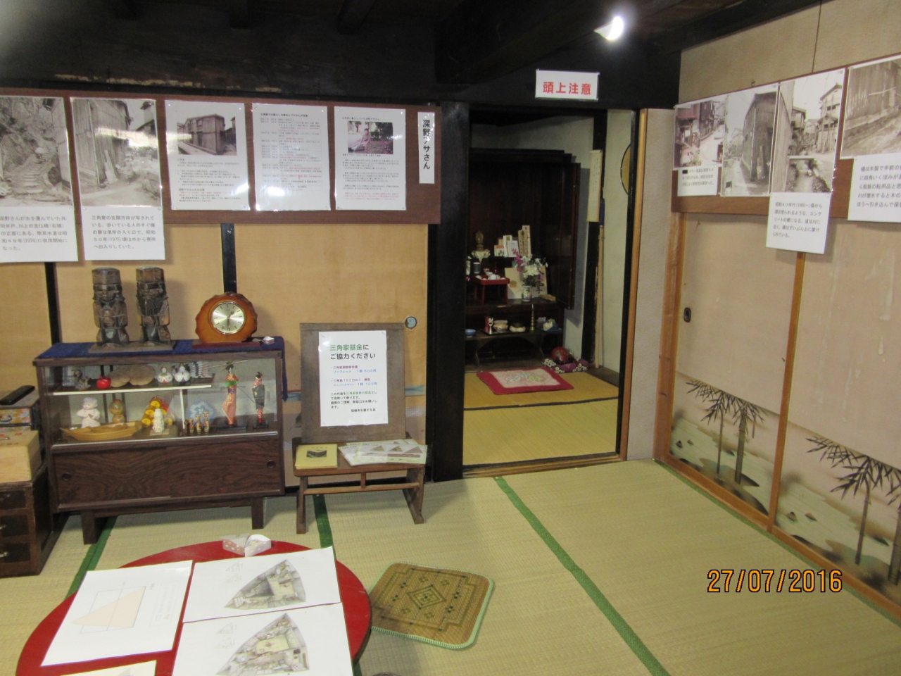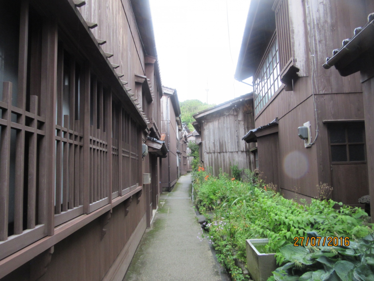 狭い土地に船板で作ったという家が密集していて今も人が住んでおり、とても趣のある街並みであった。特に、吉永小百合のJRポスターで有名になった、三角家は公開していて(入家料300円)、一般の女性が【三角家】を工夫して生活していた様子の展示もあり大変面白かった。三角家の中には、スタッフが常駐していて、実際の生活の様子や宿根木の街の歴史の説明をしてくれて非常に為になった。佐渡の主要な観光スポットの一つになっていた。宿根木に行ったら、【三角家】は必見。観光客はとても少なかったが、女性の旅行者が友人と三角家の前で記念撮影していた。