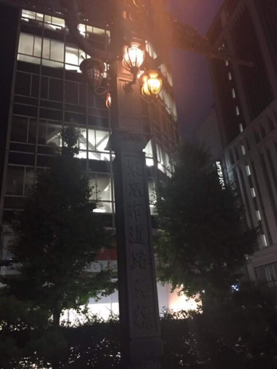 記念碑も電灯式のレトロなおしゃれな感じです。