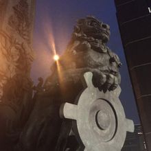 日本橋の高欄中央部にある青銅製の照明灯を飾っている像です。