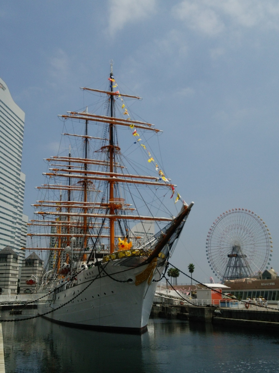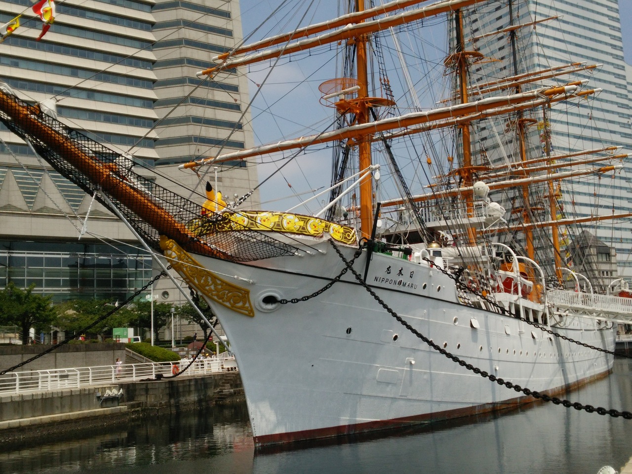 日本丸は、みなとみらい21の日本丸メモリアルパークに停泊(展示)している航海練習用の帆船です。すでに現役は引退しており、現在は船内を一般公開(有料)しています。