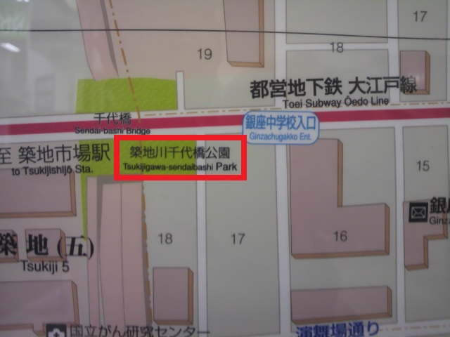 銀座の花椿通りから徒歩圏内にありますので、築地中央市場へ足を延ばす人が、見通しの良い千代橋公園で足を止めることも多いです。