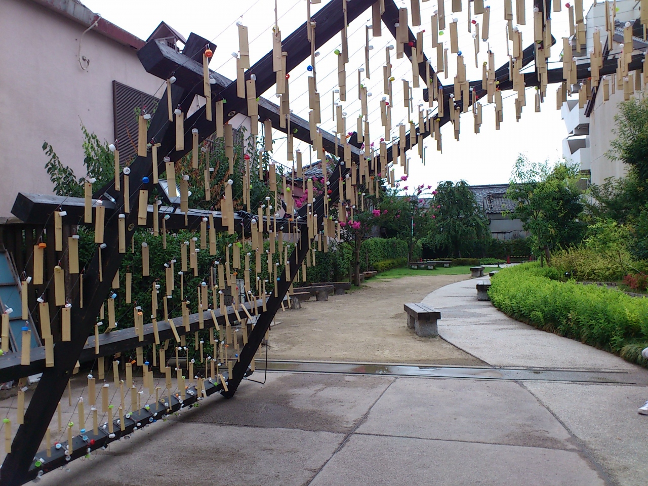 川越の一番の観光スポットの一番街蔵の街の中にある広場です。蔵の街の南端に位置します。入口に風鈴がぶら下がったアーチが作られていて、とても涼しげでした。中にはベンチも置かれていて、ここで小休止をとることもできます。こんな広場があるとありがたいです。