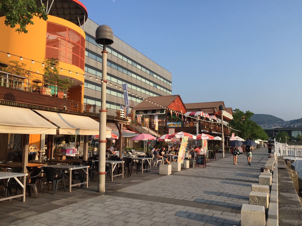 チンチン電車の出島駅から徒歩5分以内の所にあります。夕暮れ時に行きましたが、それほど混雑もなく食事ができました。魚は新鮮で美味しいです。海老天ぷらとお刺身を頂きました。出島や文明堂総本店も歩いて行ける所にあります。