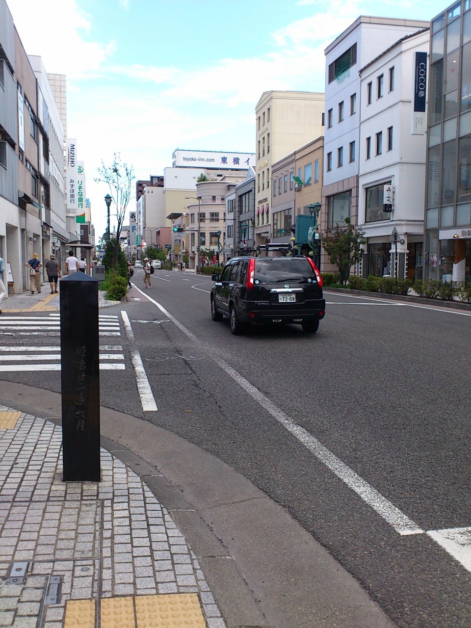 国宝松本城へクルマで行きました。複雑な形の松本城の天守閣を堪能し、せっかくなので松本市内を散策することにしました。松本城の南口から松本駅の方へ、千歳橋を渡った先です。千歳橋までは大名町通りという名の銀行などの中心としたオフィス街ですが、この本町通りは地元の方が利用する一般の商店街です。ファッションやグルメのお店が並んだ楽しい商店街です。