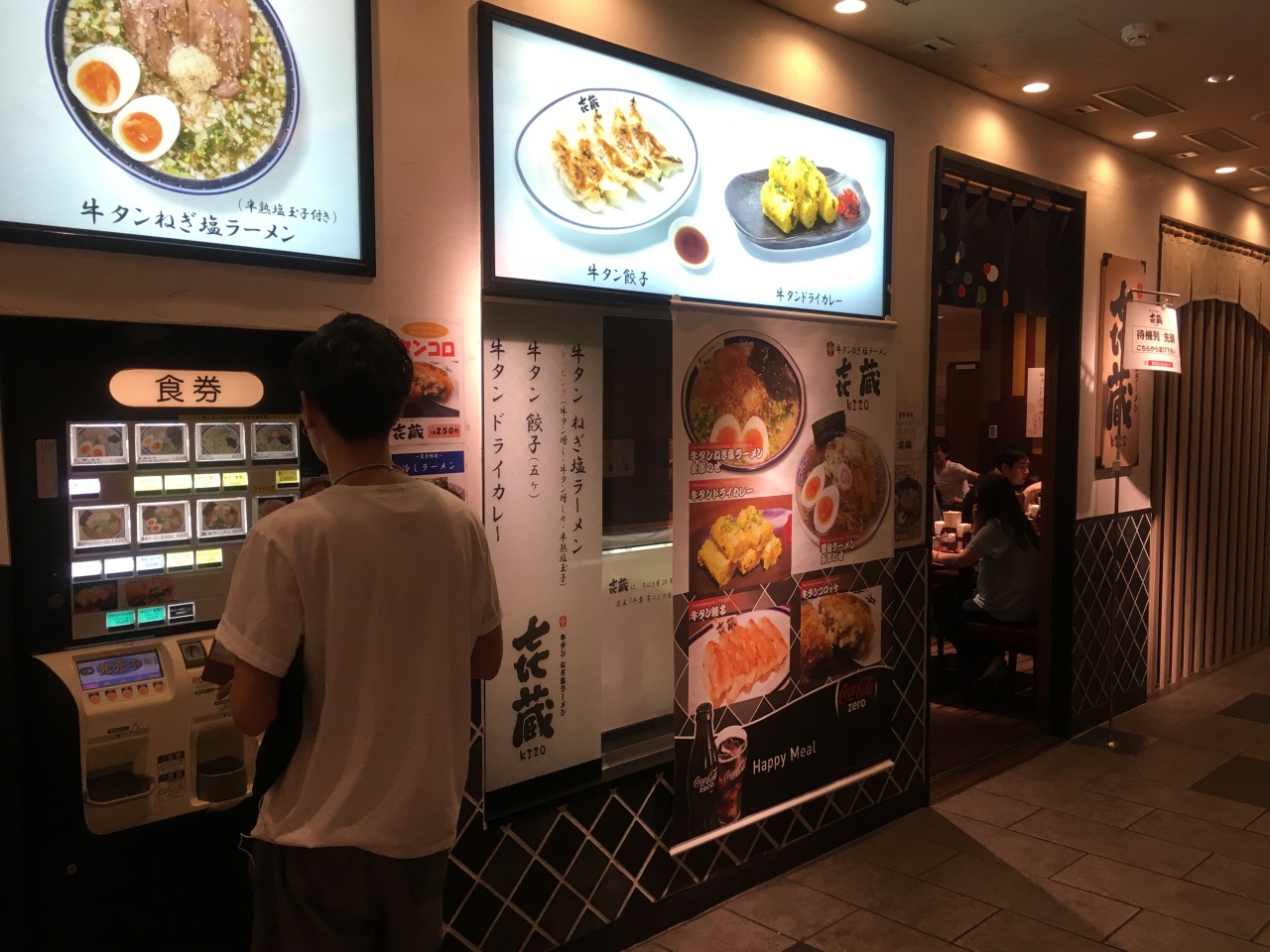 以前来た時、㐂蔵というお店はなかったと思います。今も六厘舎が一番人気のようですが、ラーメンに牛タントッピングは初めてなので、東京ラーメンストリートにある8店舗の中から、㐂蔵を選びました。