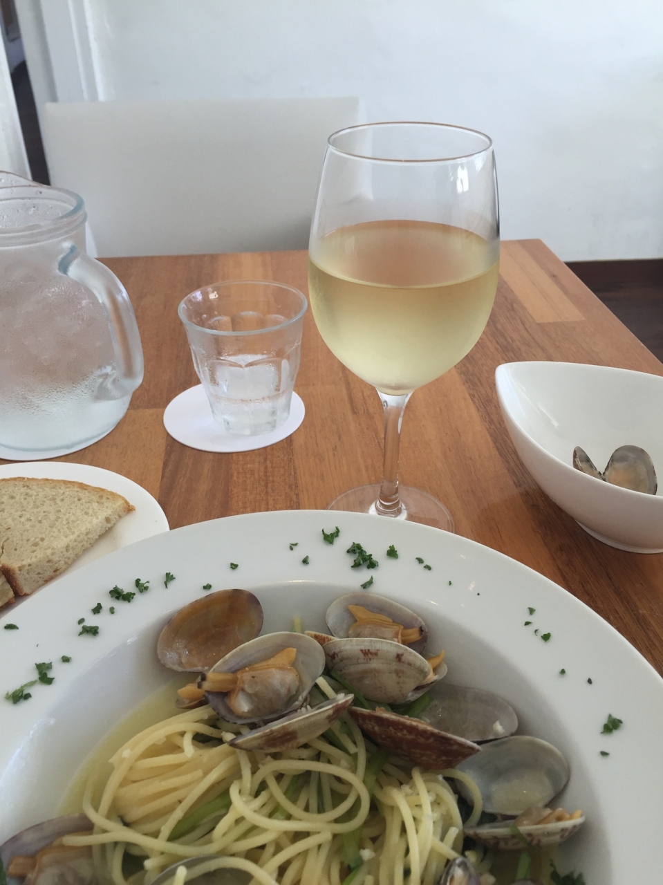 元米軍外国人住宅をオシャレな店舗にした 白い雰囲気ある店内は 昼からランチの白ワインを飲んで にピッタリであった。