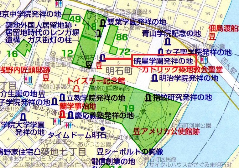 暁星学園は、明治21年にカトリック修道会マリア会の神父らが小規模の学校を設立し、築地司教座聖堂(現在のカトリック築地教会)で開校したのが始まりで、その年のうちに麹町区(現・千代田区)に移転しました。