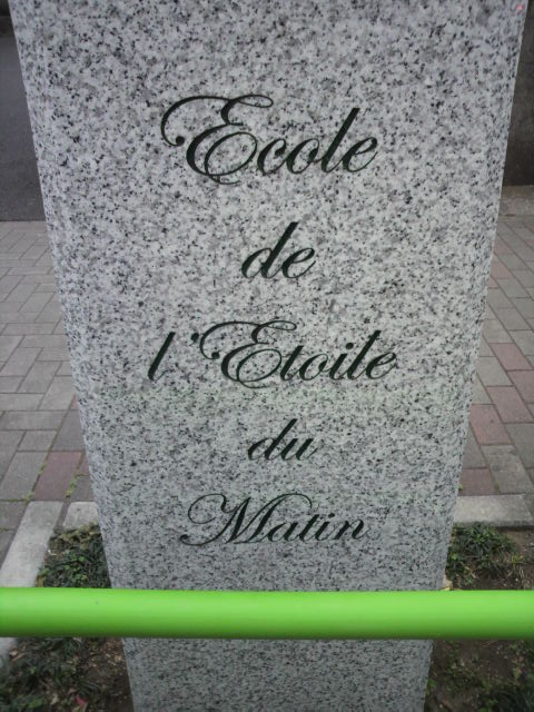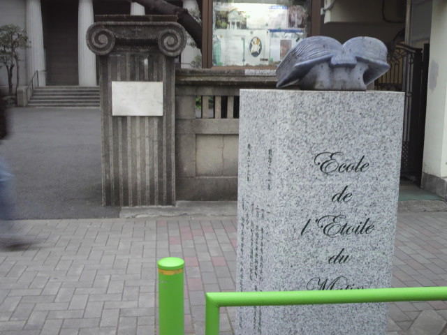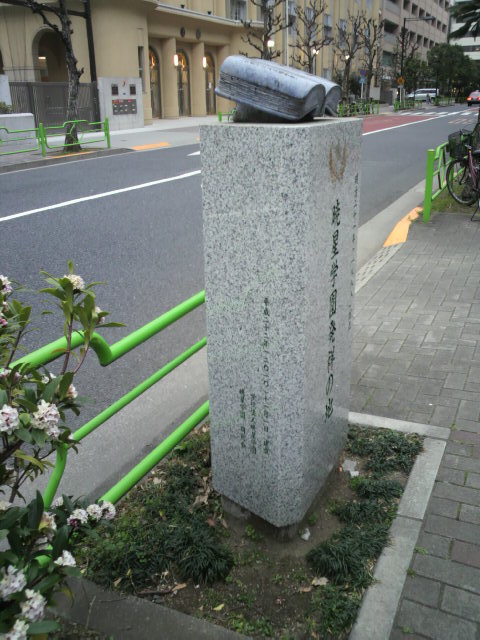 暁星学園発祥の地の碑が、カトリック築地教会の前の歩道に置かれています。