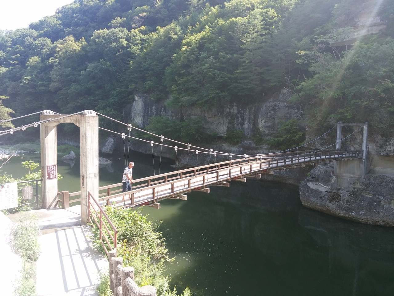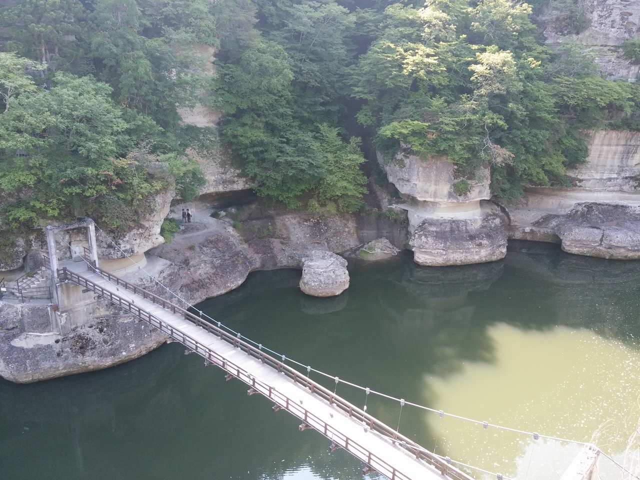 東北道白河インターを降り20分ほどで到着。川沿いに奇岩が並ぶ光景は一見の価値ありです。手前に公営駐車場がありますが、さらに先に進むとお土産やさんの無料駐車場があります。そこに停めた方が、つり橋(塔のへつり)には近いです。無料ですが礼儀として何か購入された方が。。帰りにソフトクリームとえごまあんぱんを買いました。吊り橋は定員30名。揺れる橋を渡ると違う光景が楽しめます。大内宿と共に訪れるとよいかも?