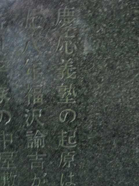 慶應義塾開塾の碑には、福沢諭吉により開塾された旨が記されている他、有名な学問のすすめにある「天は人の上に人を造らず、人の下に人を造らず」との言葉が、碑の最上部に記載されています。