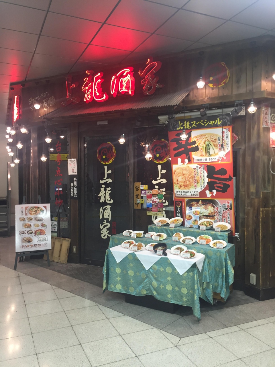 上野駅入谷改札を出た正面にある中華料理のお店です。改札外ですが、完全に駅構内ので、電車に乗るには便利な場所にあります。料理はいろいろと揃っていますが、点心セットというのがあり、会社帰りや出発前にこれで軽く一杯やっていくのも悪くありません。その点心セットの内容は餃子か春巻かシュウマイの中から一品と飲み物は生ビールやサワー、ハイボールなどからひとつチョイスします。おすすめは定番の餃子とビールです。