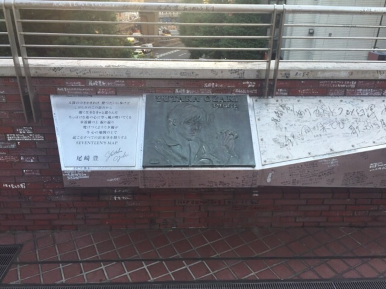 青山学院在学中にこのビルの一角から渋谷の街に沈む夕陽をよく眺めていたことからこの場所に記念碑が建てられています。