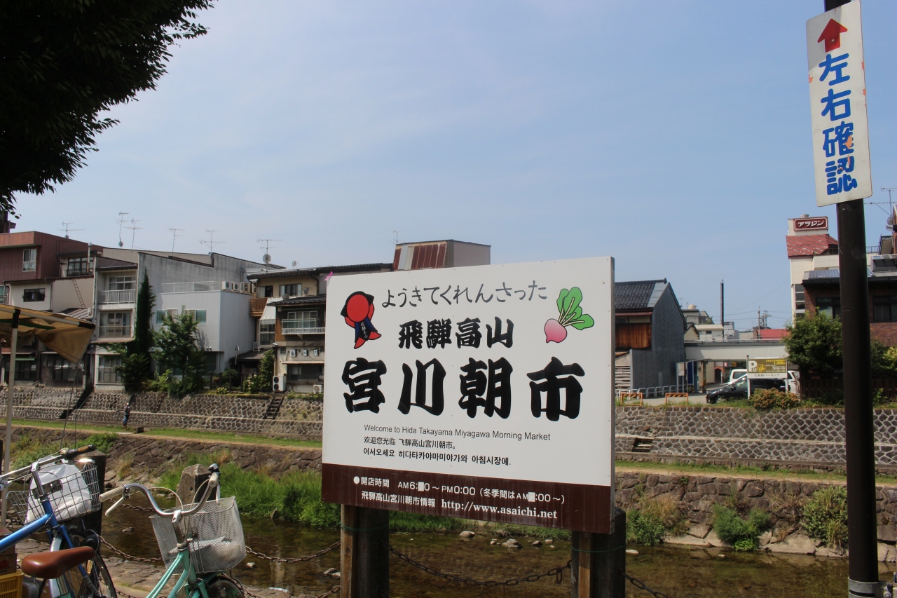 飛騨高山を代表する観光地のひとつです。古い街並みのある宮川沿いに何軒もテントがでて、高山の農作物や果物、漬物などが販売されています。朝市という名前はついていますが、午前中やっているので、比較的のんびりお買い物できます。この時期は高山ももがおいしかったです