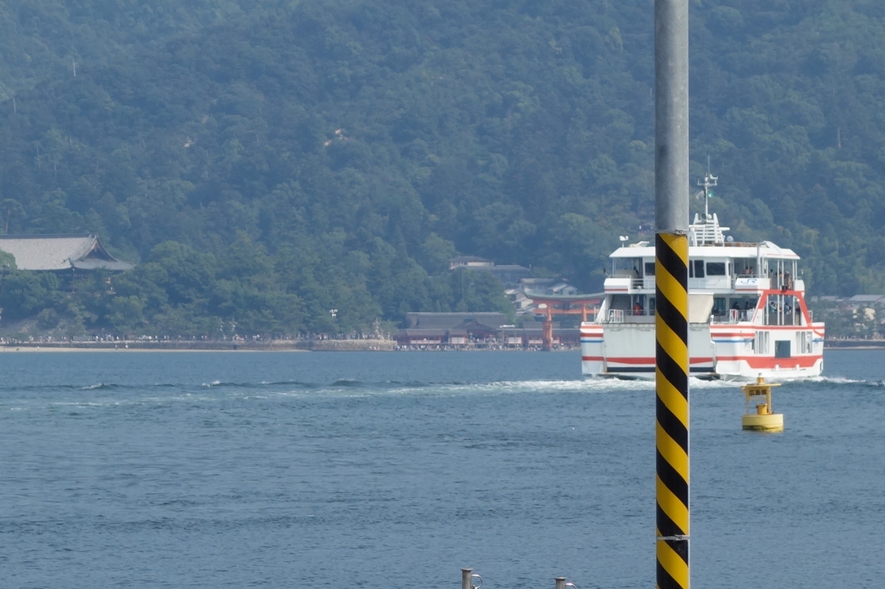 宮島へわたるために乗船するフェリーです。厳島神社のすぐ近くを通ってくれます。