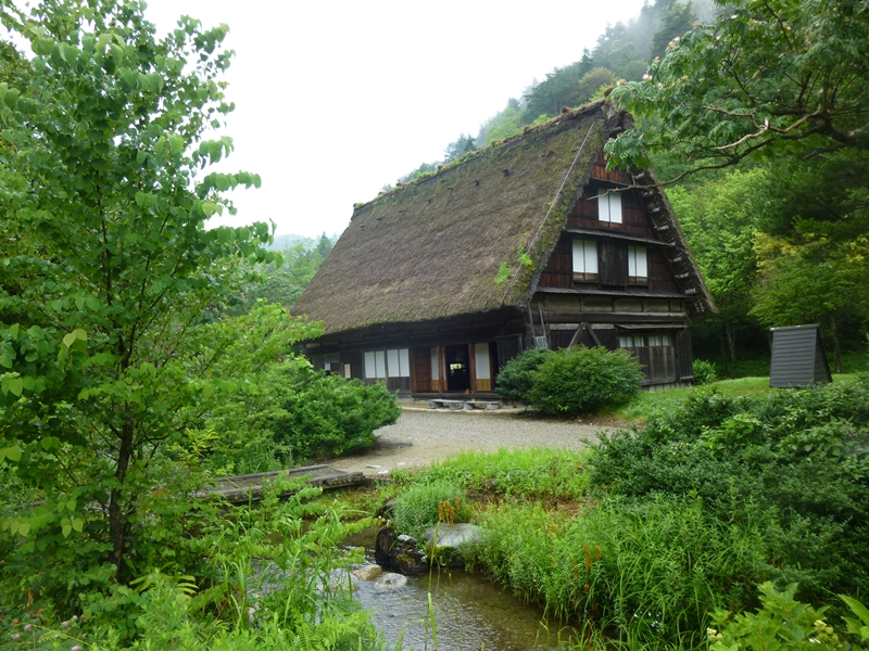 「コース概要」 7月23日 昼食後、荻町合掌造り集落を2時間程散策する。45年以上前に来たことがあるが、完全に観光化されていた。一番大きな長瀬家を見学する。1階が生活の場、2階が使用人の住居、3,4階が養蚕場、5階が薬草の干し場となっていた。 今は1階が現在の生活の場と昔の生活用品の展示、3階は作業道具等の展示 ,4階は養蚕場跡。 本通り、東通りを中心にあるく。明善寺、白川八幡宮、等を回る。夕食後夜景とホタル鑑賞。 7月24日9時ごろ宿の車で、バス停まで送ってもらう。 「大田屋」はこの辺では安価で、また宿の御夫婦も応対が丁寧で良い旅館である。バスが出発するまでの時間で近くにある、野外博物館「白川郷合掌造り民家園」(500円)を見学する。近隣の合掌造り民家を移築して集めた園である。バスで金沢駅に向かい、特急はくたか、上越新幹線を乗り継いで帰宅。