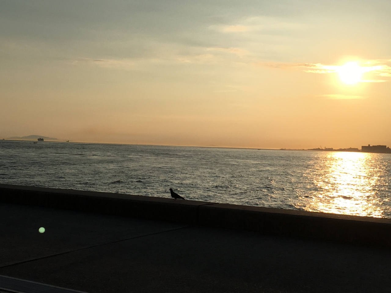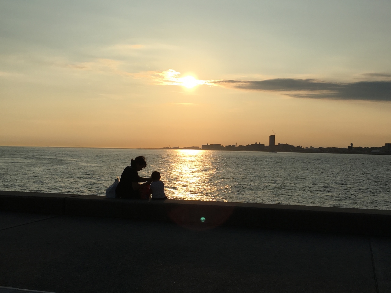 JR舞子駅、山陽電車舞子公園駅からすぐの距離にあるアジュール舞子。海水浴場で、いまがシーズンまっさかりです。ここの海岸は泳ぎやすさもありますが、駐車場も完備されていることが利点のひとつ。車でも気軽にアクセス出来ます。また、シャワーなども無料で使えるのもいいですね。夕陽もご覧のとおりの美しさです。