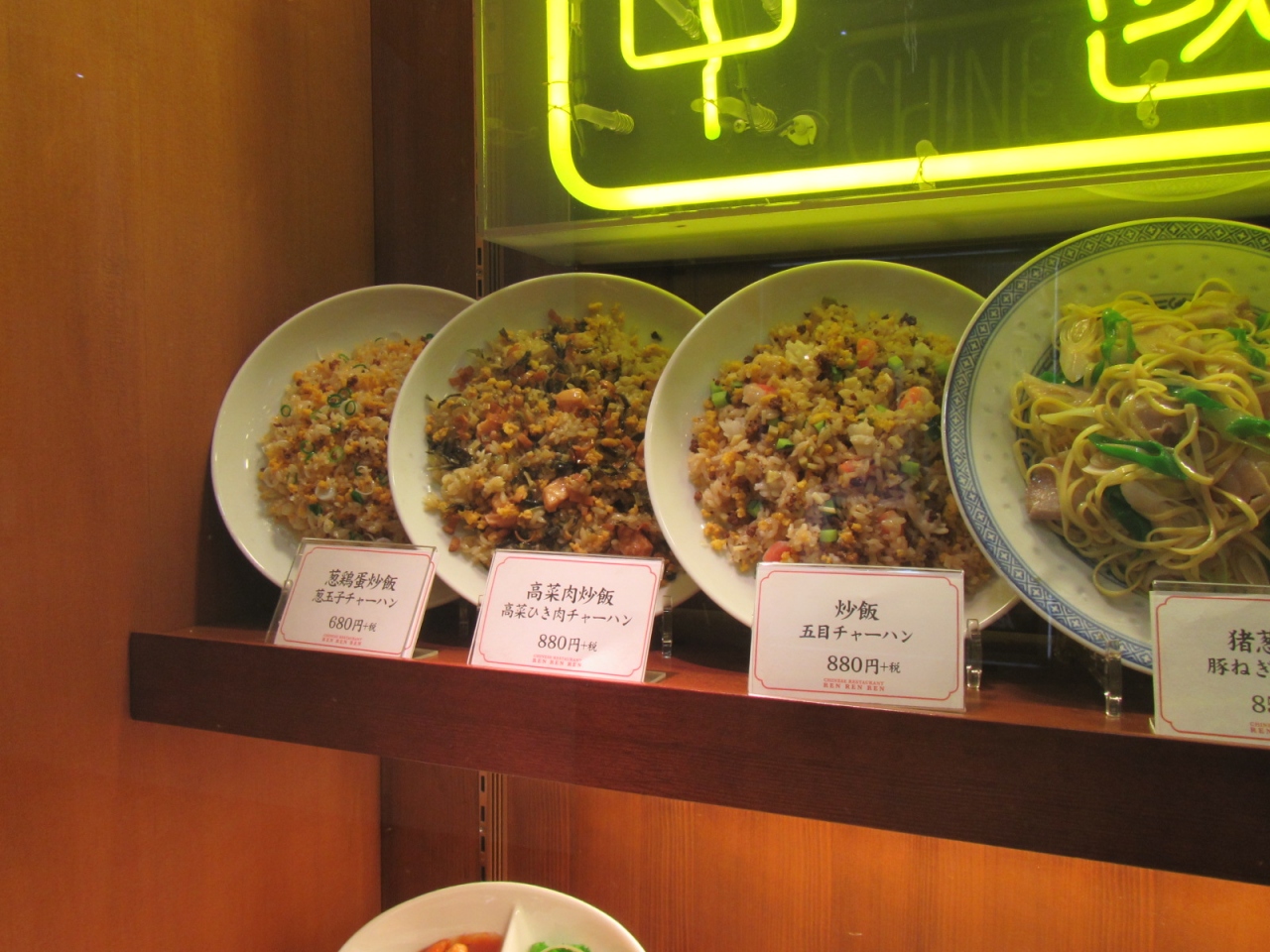 炒飯は、高菜、葱玉子などの種類があり、そぼろ肉が美味しそうな担々麺は、赤、白、黒、それにエビ味噌などの種類があります。