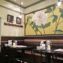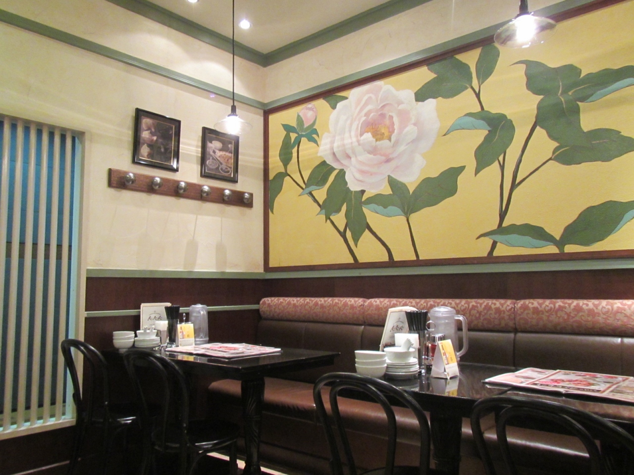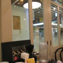 同階のカフェブルーなど、他の店と外装を統一し、円山の洗練されたイメージの白を基調とした明るい窓で廊下と隔てられており、店内の片側は中華料理店らしからぬスッキリした雰囲気です。