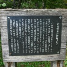 詩碑は、『すみやかなすみやかな万法流転のなかに 小岩井のきれいな野はらや牧場の標本が いかにも確かに継起するといふことが どんなに新鮮な奇蹟だらう』と刻まれています。そばにある説明板によると、心象スケッチ「春と修羅」のなかの詩「小岩井農場」(パート1)から撰んだものだそうで、宮沢賢治は、小岩井農場が好きで何度も訪れたとあります。詳細は、添付写真を参照ください。