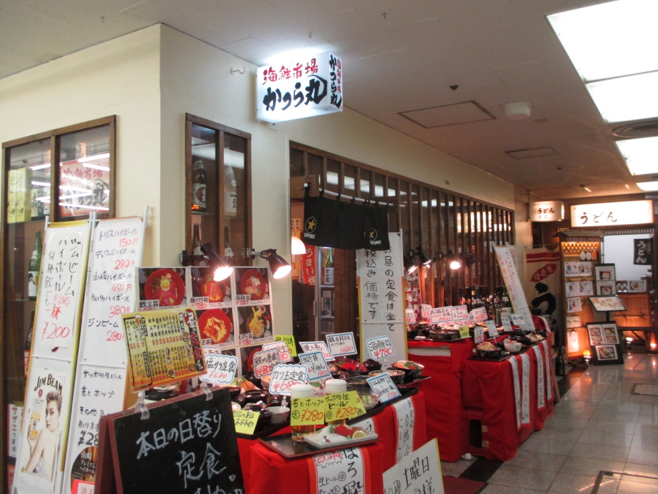 物価が非常に安く、内容も納得の船場センタービル内のレストランです。分厚いネタが乗っている海鮮丼がなんと780円です。ランチタイムに店頭に並んでいるたくさんの見本を見るだけで食いしん坊の私は食欲が湧きます。華やかなお店です。