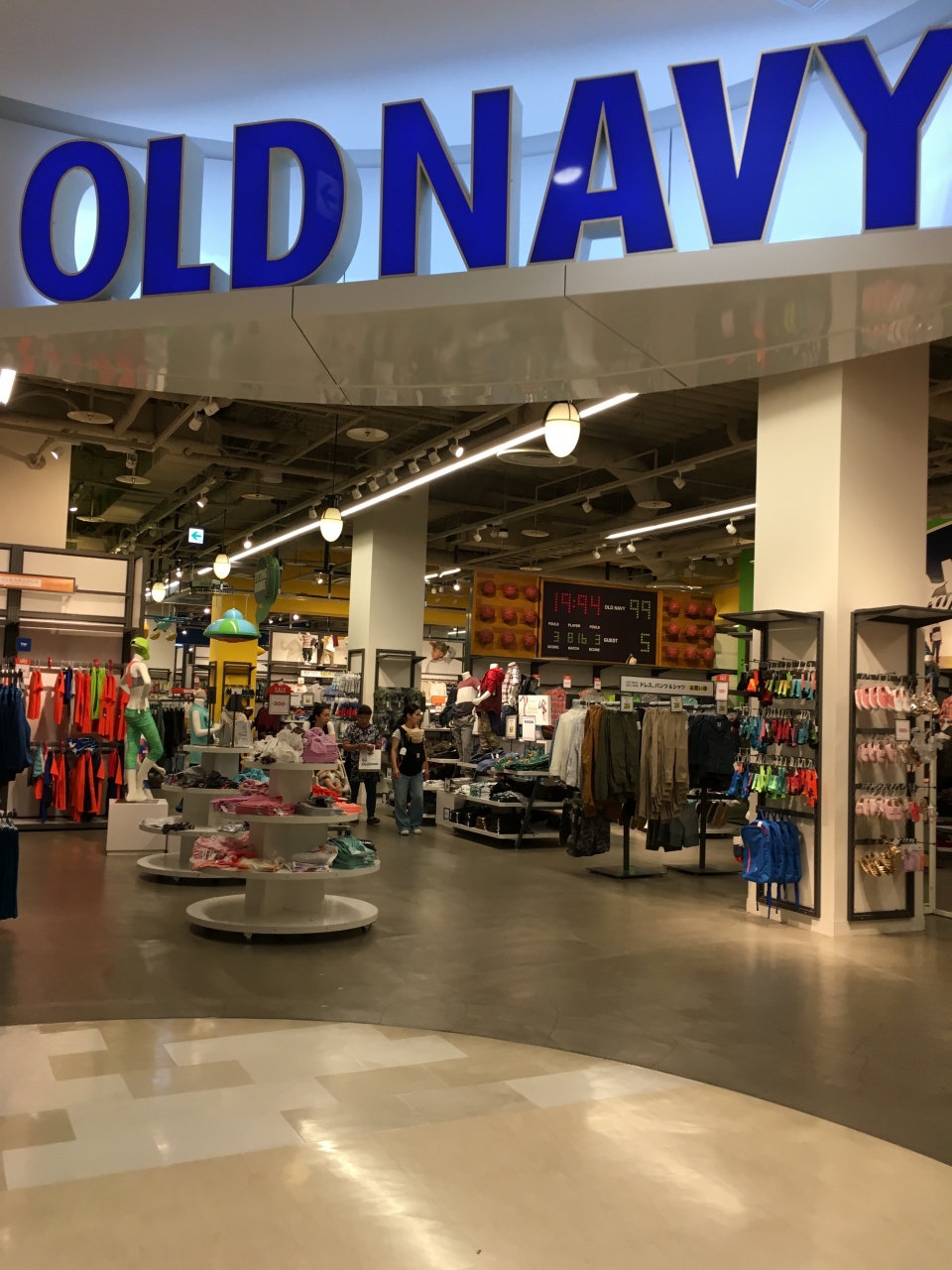 GAPよりももっと安いオールドネイビーが、大阪市郊外にある大日駅に直結しているイオンモールに入っています。大きなスペースだけあって、品物の数が本当に多いです。しかも、GAP同様にセールが多いので、とってもお得。日本から撤退する話もありますが、いつまでもあってほしいお店。