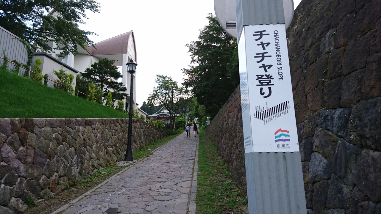 チャチャ上りは函館の教会街の聖ヨハネ教会をの脇あたりからさらに上る坂道です。20間坂や八幡坂のような車が通れる大きな坂ではなく、石畳の狭い急な坂道でした。