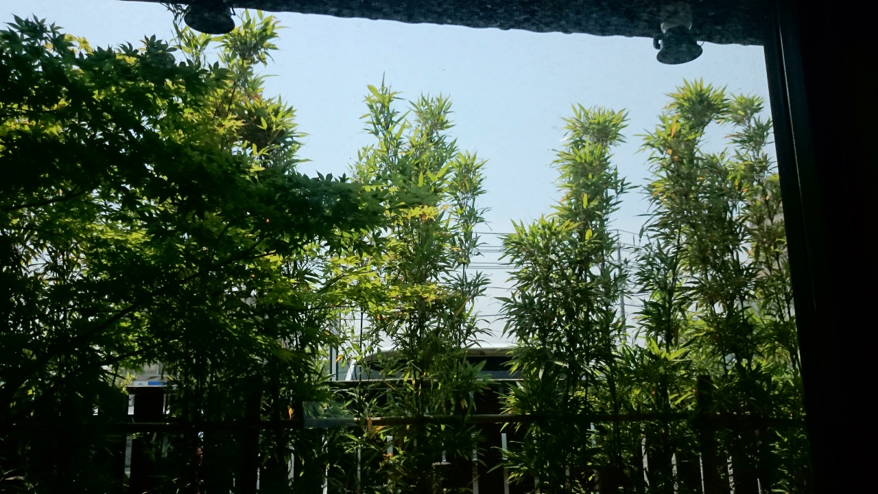 露天風呂は一人用の湯船が3つあり、庭の竹林を眺めながらお湯につかれます。