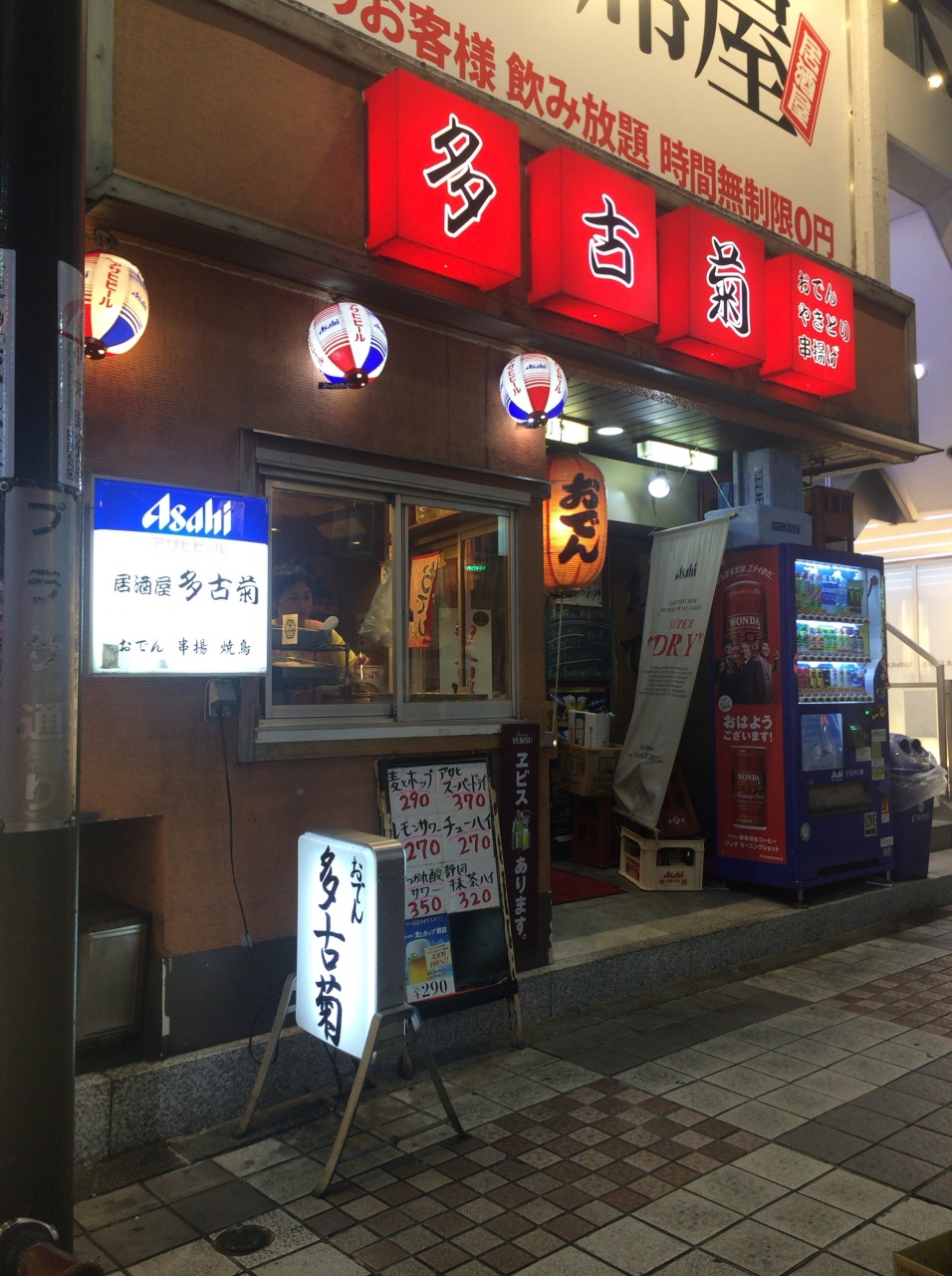 井の頭線渋谷駅神泉側地上改札を出て右の飲み屋街の一角、大きな赤い看板が目印の多古菊