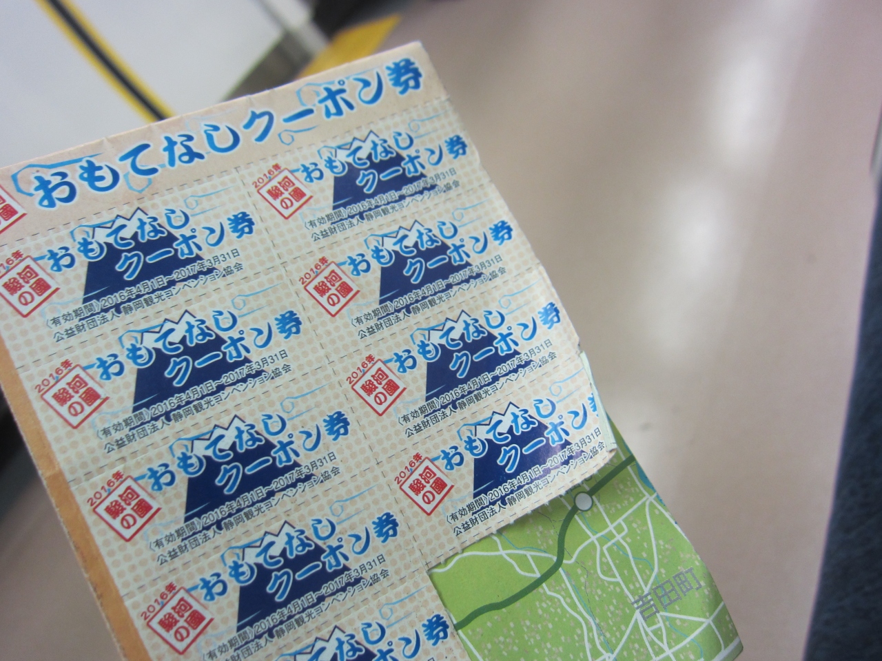 静岡駅の自由通路を北口に出るところにある観光案内所で、入口は駅の外側ですが、自由通路からもわかるよう自由通路側にも「静岡市観光案内所」と書かれていてすぐに場所がわかりました。日本平から東照宮へ行こうと思い、ネットでクーポン券を印刷して来ようと思いましたが忘れてしまい、こちらでクーポン券がないか聞いたら「おもてなしクーポン」をいただきました。駅前で場所もわかりやすく、気軽に寄れる案内所でした。
