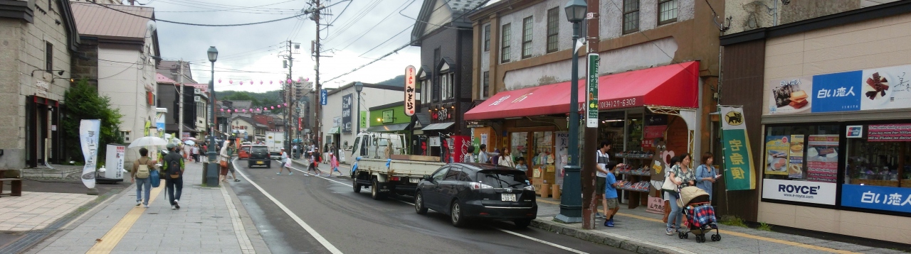 小樽駅前から海側へ歩いて10分ほど、運河の手舞うから西へ延びる観光客相手の繁華街。