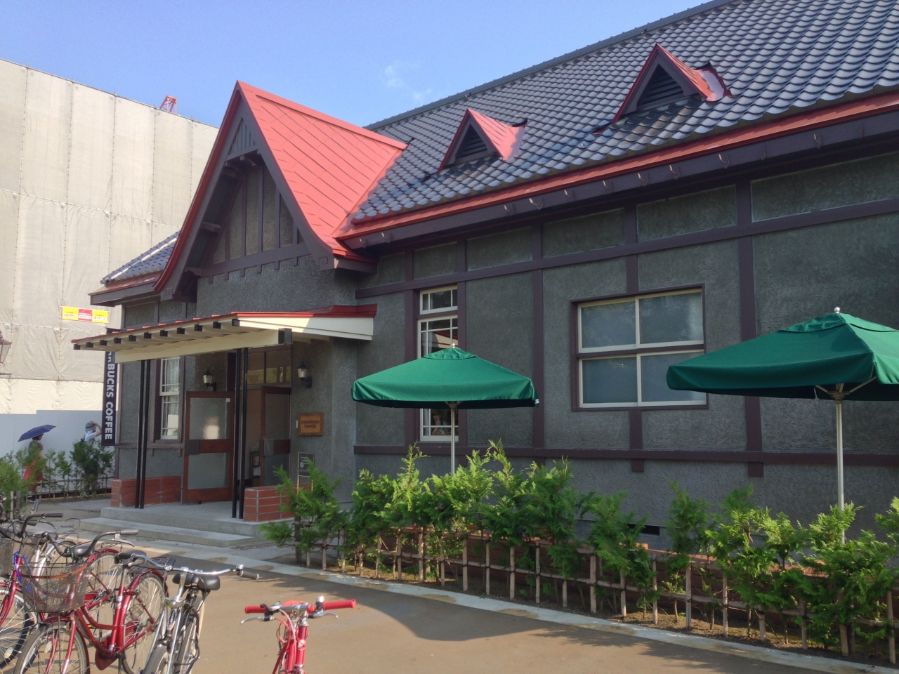 1917年に陸軍師団長の官舎として建設された木造の建物を活用したスタバ。