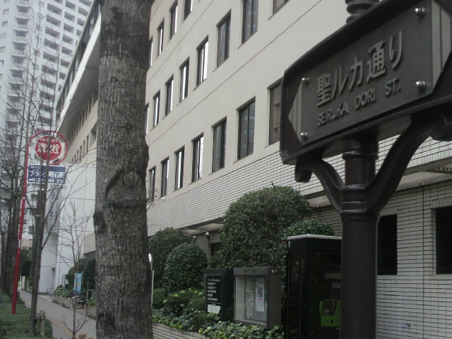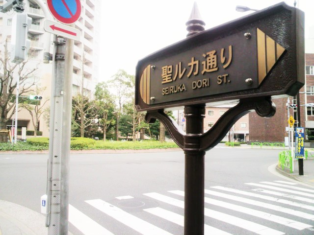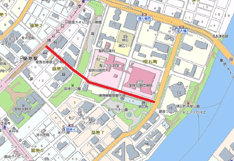 聖ルカ通りは、聖路加国際大学と中央保健所の間を通る中央区の愛称の通りです。