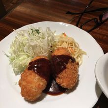 ちょっと食べるつもりが、帆立クリームコロッケとロールキャベツシチューのセットを注文。意外とご飯の量も多くボリュームがあった。