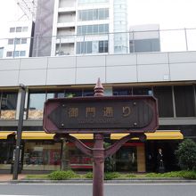 新橋駅方面の高速道路下にある「銀座ナイン」沿いにある通りです。1710年に建てられた「芝口御門」が「銀座御門通り」の由来になっています。通り沿いには、柳が植えられてありました。夏の暑い時期でもあったので、涼しい銀座ナインの中を通っている人が多いのか、割とひっそりとした雰囲気でした。