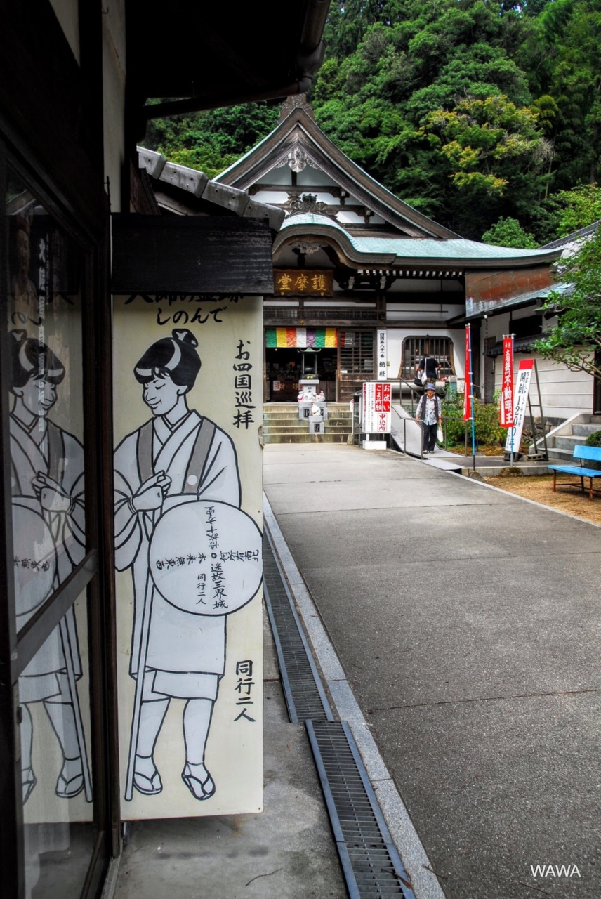 第81番札所白峯寺へは、高松市側から五色台スカイラインなどを使って瀬戸内海の多島美を楽しみながら行く方法と、坂出市東部に集中する崇徳上皇伝承の地を巡りながら一気に五色台を登る二つの自動車ルートがオススメです。山門前の無料駐車場に車を停め、護摩堂辺りまではフラットですが、本堂や大師堂までには旧な石段があります。