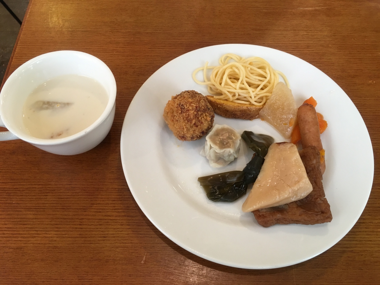 サラダは、和風と洋風両方あります。煮物やおでんなどの和食もあれば、ピザやスパゲティなどの洋食もあります。ドリンクとデザートは、それほど種類がありませんが、十分だと思います。