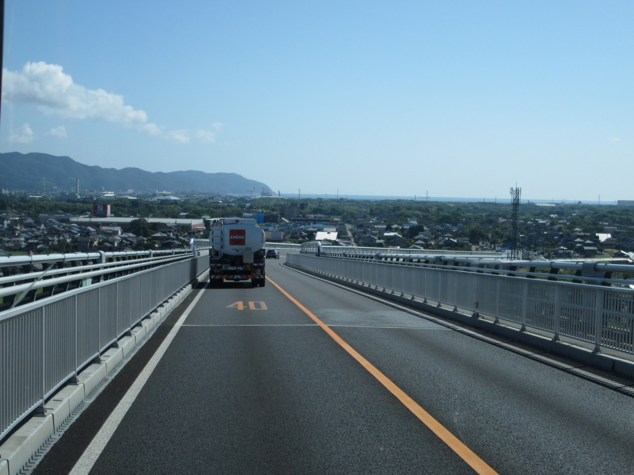 ベタ踏み坂、車でないと渡れないなと思っていたら、米子空港と松江駅を結ぶ空港連絡バス、松江駅と境港駅を結ぶ直通バスがこの江島大橋を渡ります。バスでも普通に渡ることは、坂は普通、しかし、長い坂であることで、急坂に見えるんだぁと橋を渡って気づかされました。
