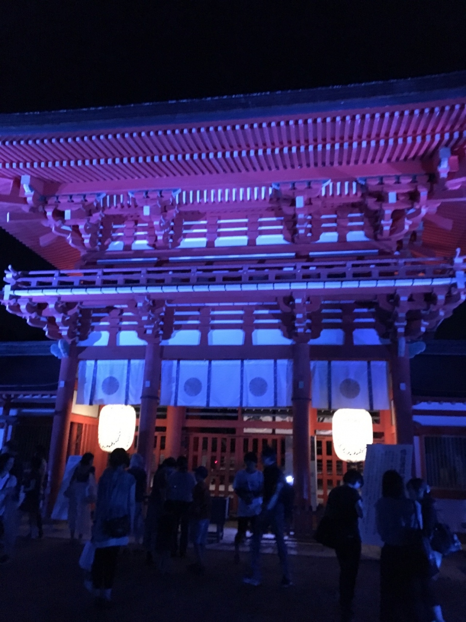チームラボとの共催で行われているイベント、光の祭に行ってきました。色が変化するライトアップで、糺ノ森がいつもと全く違った雰囲気で美しかったです。また、写真撮影すると肉眼で見るのと一味違った色味になって面白かったです。