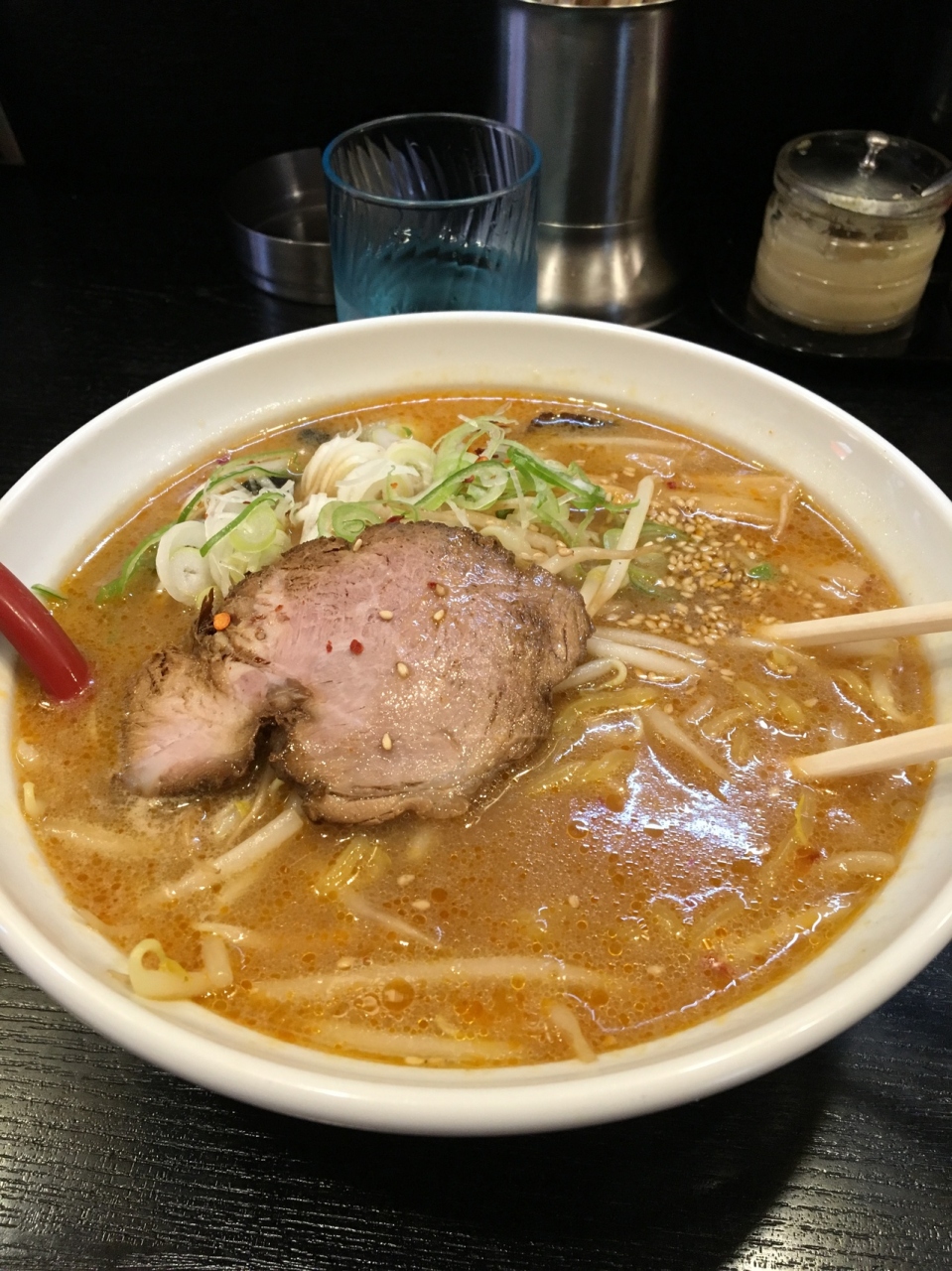朝までやっている事が売りのラーメン屋さんなので、正直味は期待していなかったが、麺もツルツルピカピカ、合わせ味噌のスープも深い味わいだった。