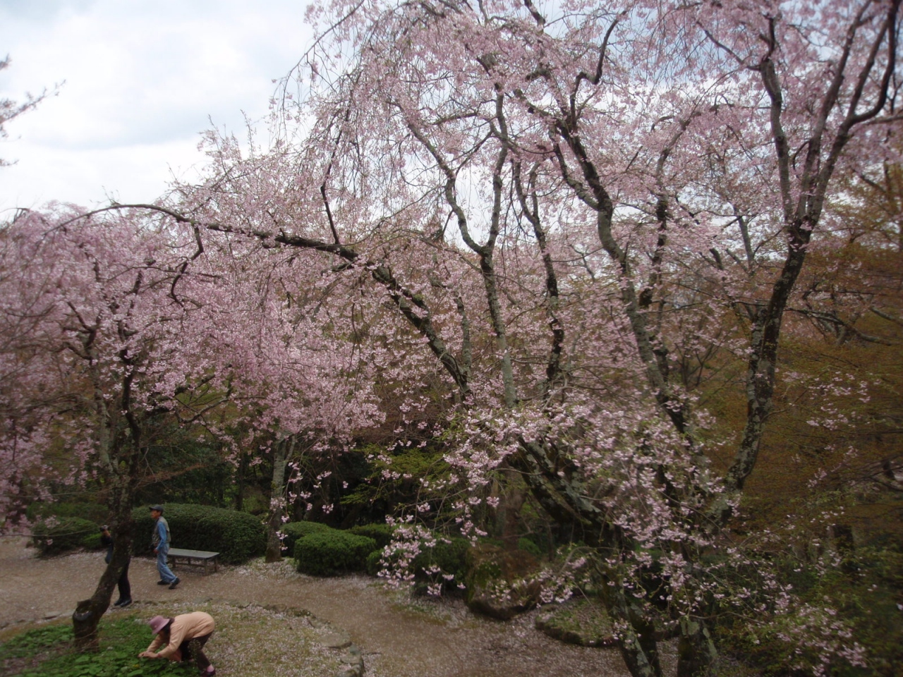 古くから桜の名所として知られ「花の寺」と呼ばれている勝持寺を訪れる。阿弥陀堂、瑠璃光殿付近のソメイヨシノは終了していたが、枝垂れサクラ、西行桜(この寺で出家した西行法師が植え、愛でた桜)が満開できれいである。感動します。実物をご覧あれ。