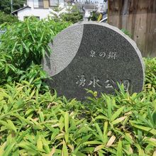 湧水は綺麗でコイがいっぱい泳いでいます。コイがいる池と離れた小さな池でも子供たちが水遊びをしていました。