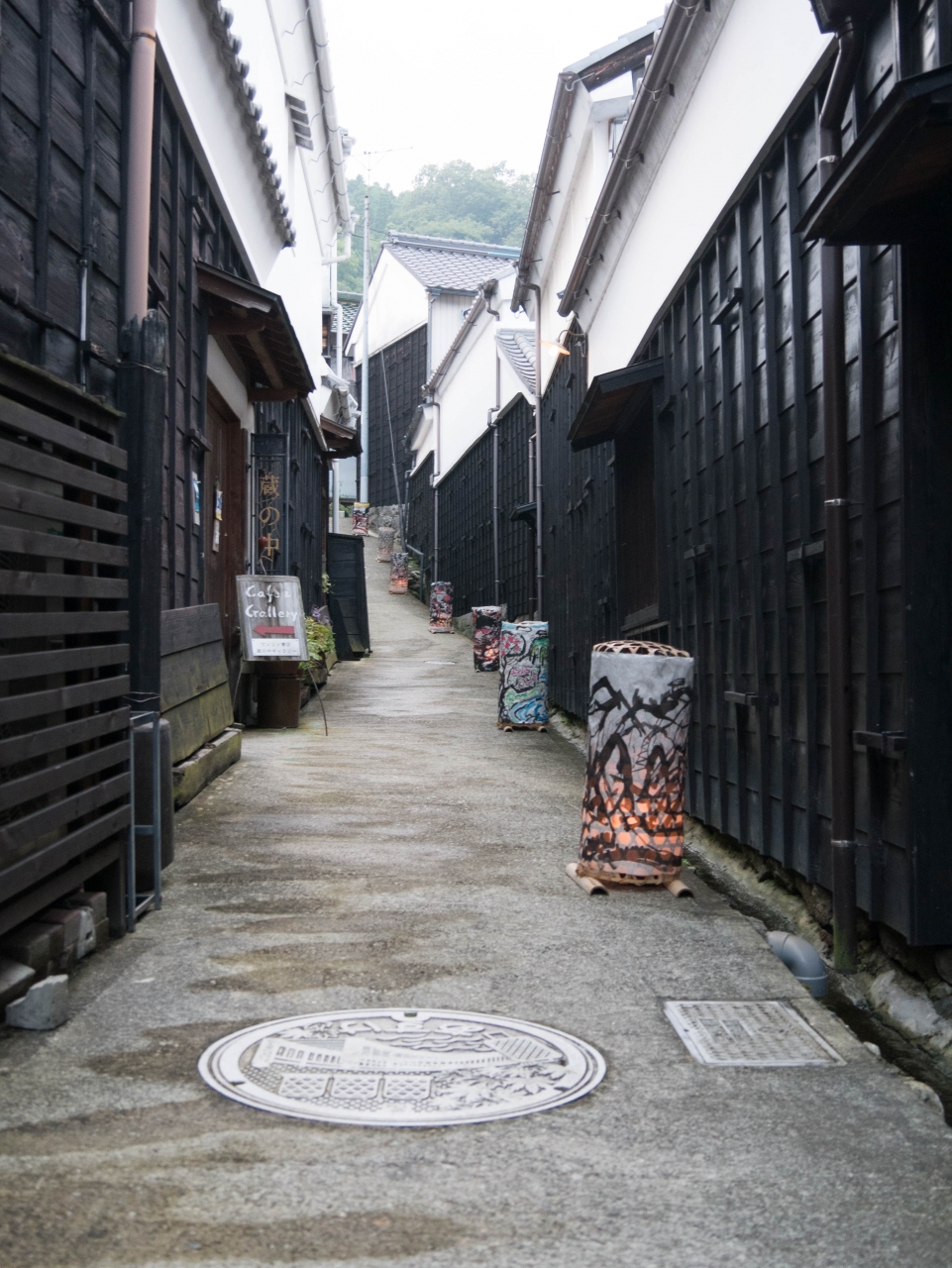黒い板壁と白い漆喰のコントラストが美しくて、たんころりんの夕涼みでも、この場所は人気撮影スポットです。