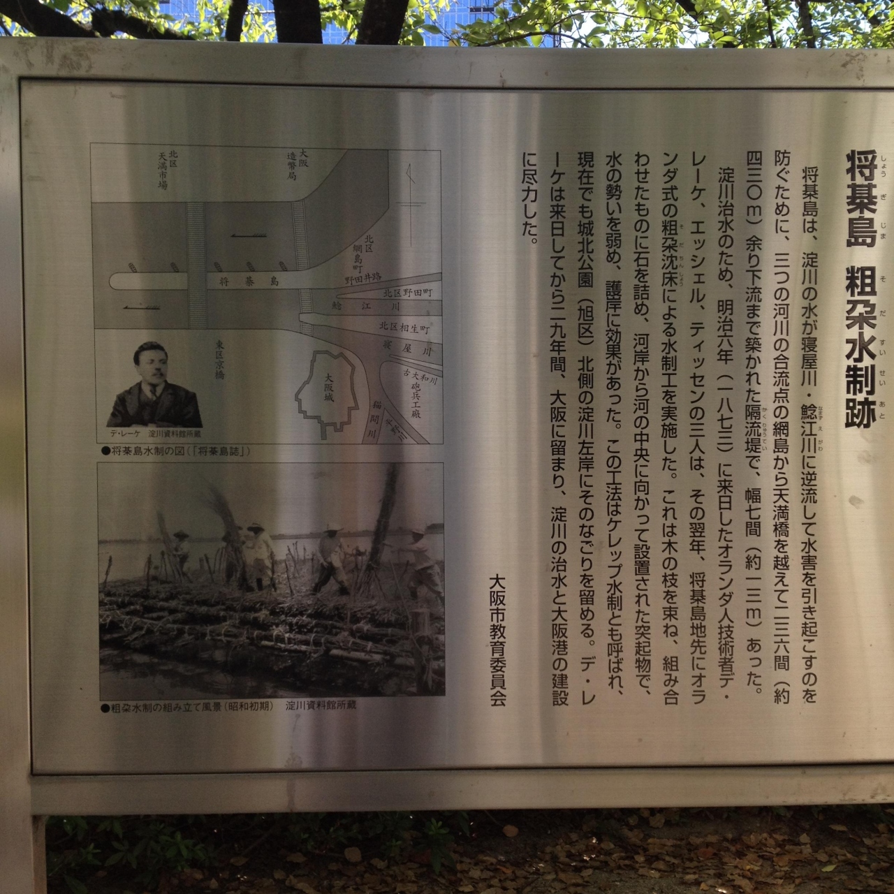 オランダ人技師の方々が大川のコントロール工事をしてくださったことで、このあたりの氾濫を防いでくださったのだな、とシンプルに考えてみました。その氾濫を防ぐための隔流堤が将棊島だったそうで、下流なので天神橋あたりまであったのかなと思います。天満橋駅とは逆側、天満橋の下の川沿いにあり、今は影も形もありませんが、このオランダ人技師の尽力はとてつもなく、ぜひ解説文を読んでみてほしいです。
